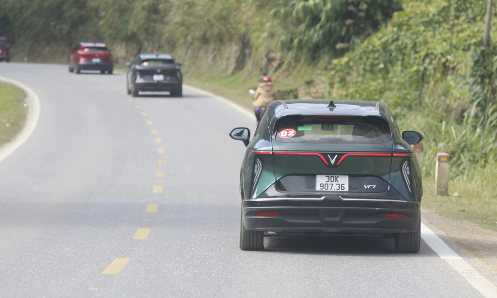 Xe điện VinFast VF 7 trong hành trình qua một tỉnh vùng núi phía Bắc. Ảnh: Lương Dũng